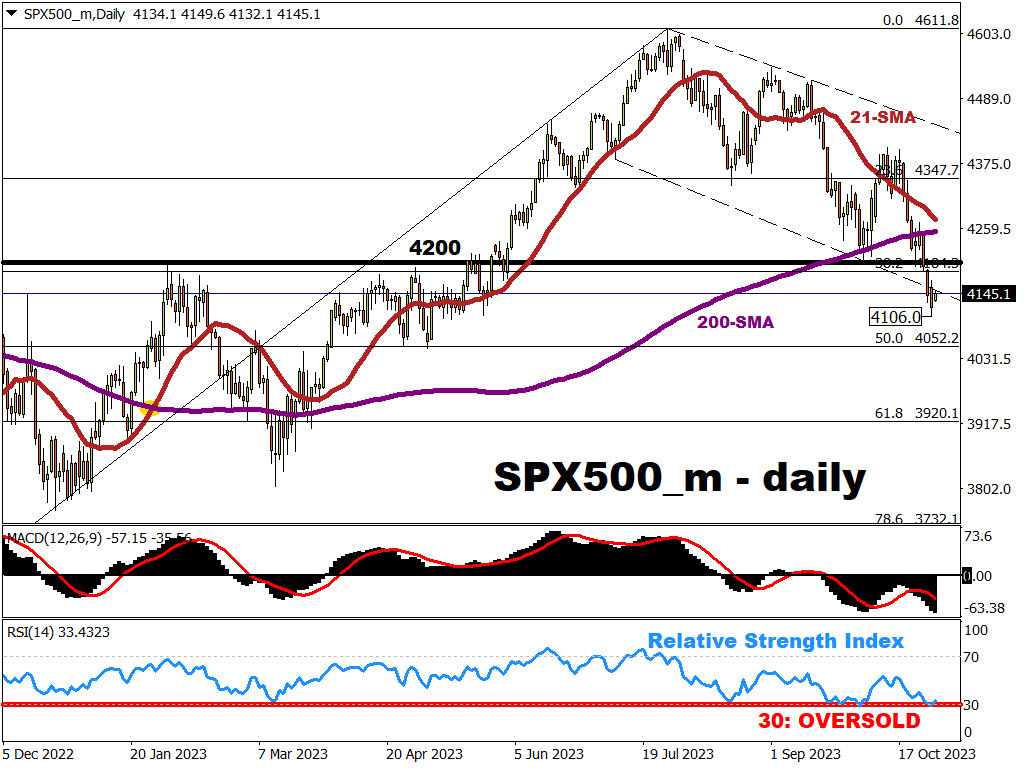 At the time of writing, the SPX500_m is seeing a technical rebound, as its 14-day relative strength index attempts to recover from the 30 line which denotes “oversold” conditions.