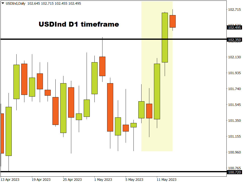 After being suppressed by increasing Fed cut bets, the dollar has fought back with a vengeance thanks to political uncertainty and inflation worries. Concerns continue to mount over the US debt ceiling debate while a recent survey revealed that five-year inflation expectations among US consumers have jumped to a 12-year high.