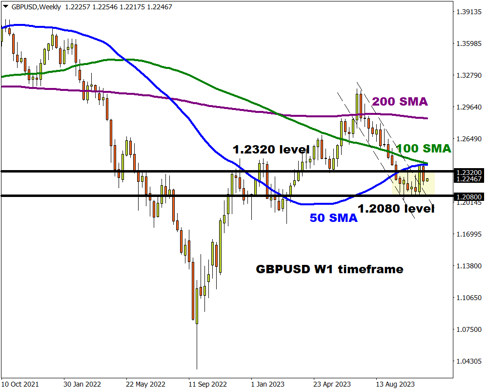 On the weekly charts, the close back below 1.2320 has placed bears in a position of power with prices trading below the 50, 100, and 200-week SMA.