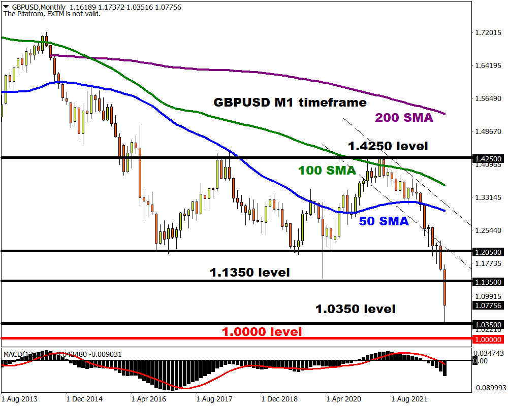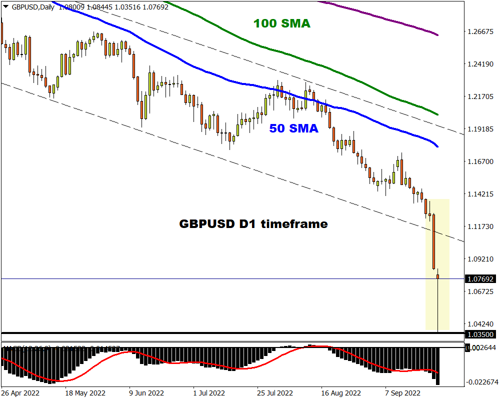 After hitting an all-time low of 1.0350, the GBPUSD was only 350 pips away from touching parity.