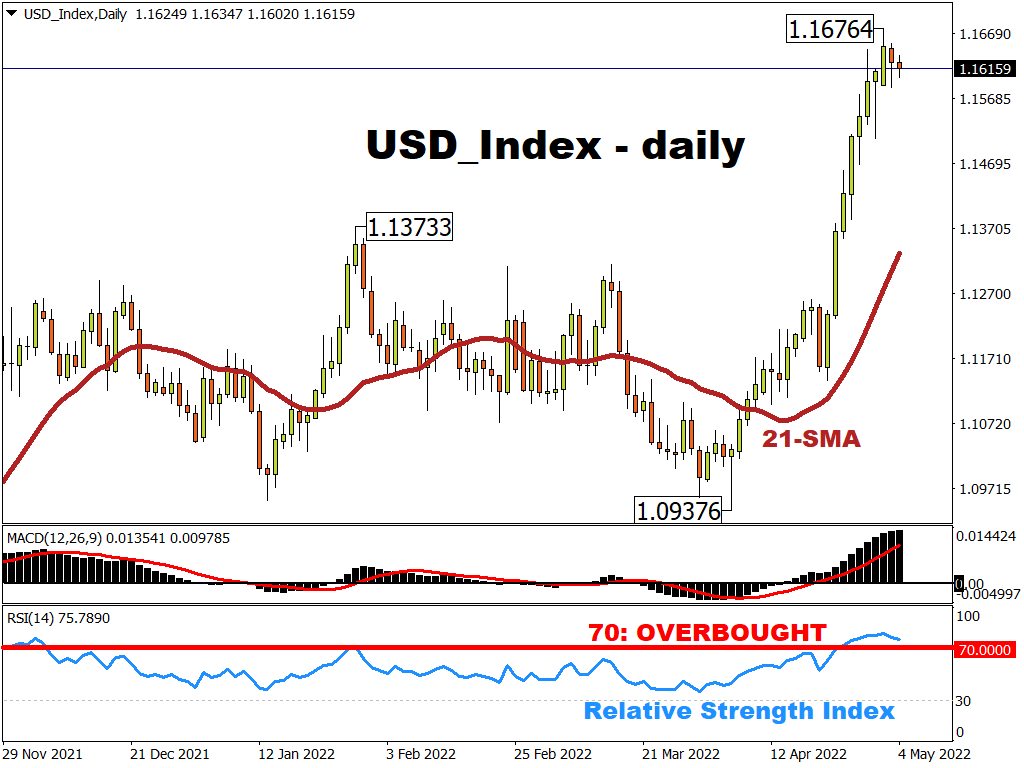 If the Fed does signal that policymakers indeed have to front-load these larger-than-usual rate hikes in order to try and tame red-hot inflation, that could spur further gains in the US dollar.