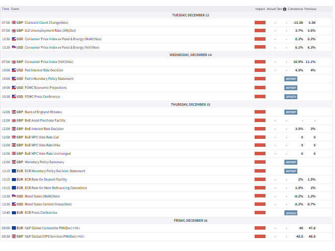 Before the heavily anticipated meeting on Wednesday, all eyes will be on the latest US inflation figures on Tuesday. Inflation is expected to have slowed to 7.3% in November compared to the 7.7% witnessed in October. A figure that meets or prints below expectations may further pare back interest rate hike bets, weakening the dollar. Alternatively, a hot print could result in the Fed raising rates for longer than anticipated – boosting dollar bulls as a result.