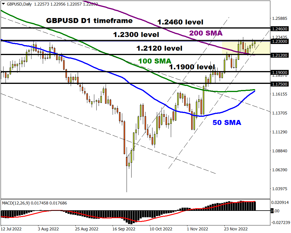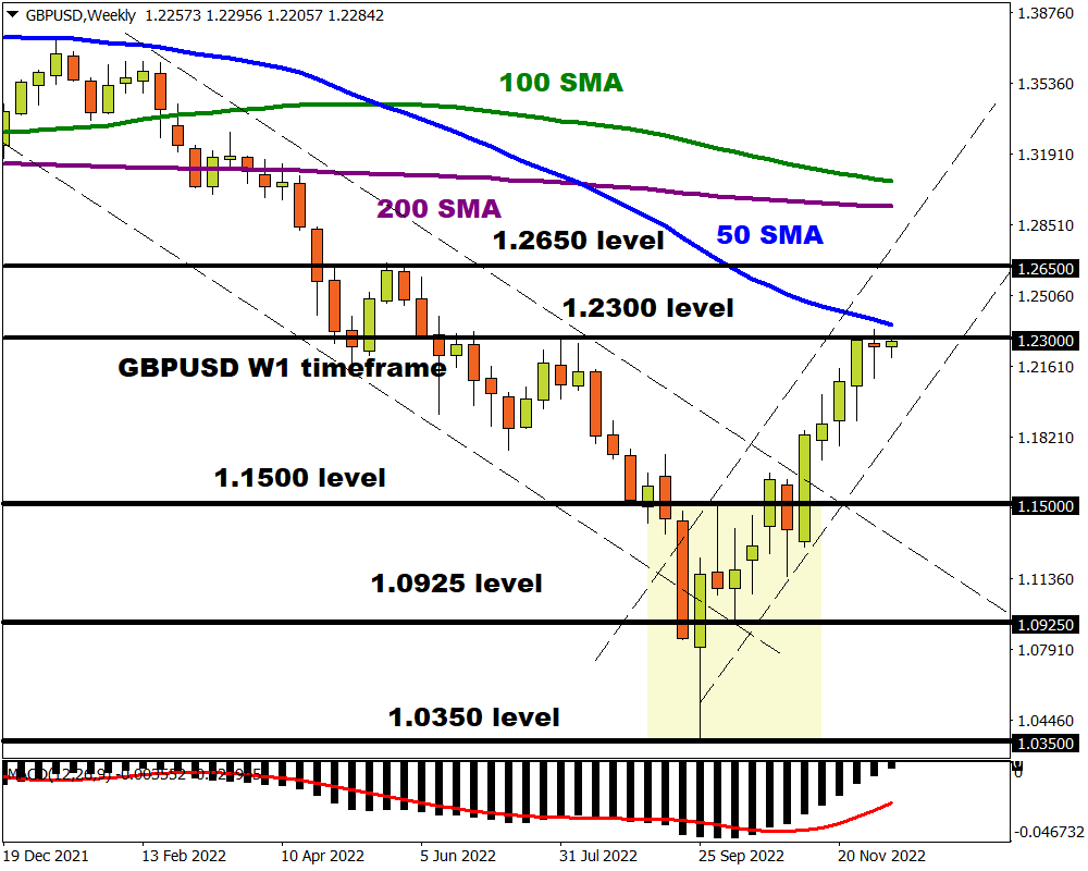 The same can be said on the weekly timeframe with 1.2300 just below the 50-week SMA. Nevertheless, prices are still bullish as there have been consistently higher highs and higher lows.