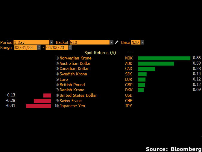 It was a similar theme for the New Zealand dollar which weakened across the board.