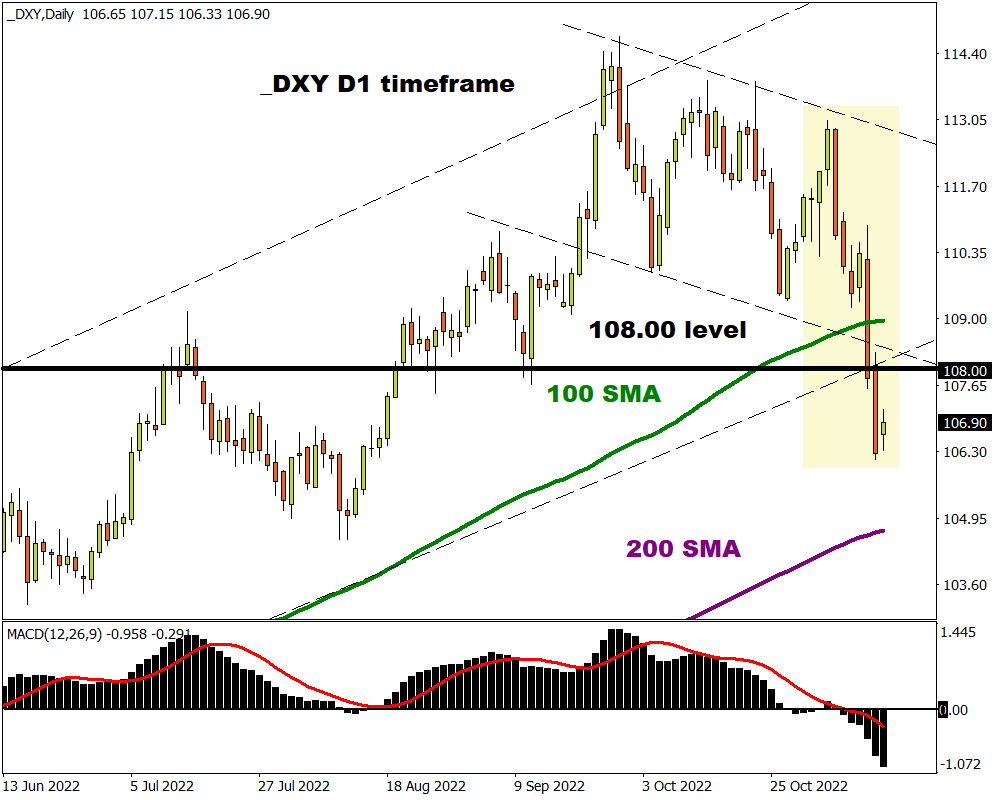Taking a quick look at the DXY daily chart, it is obvious that bears are back in town.