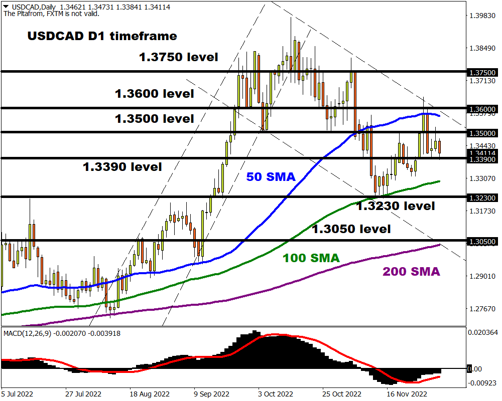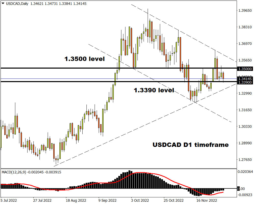 It’s all about the BoC rate final rate decision for 2022 on Wednesday, December 7th which is expected to conclude with a 25 basis-point rate hike. This decision is widely expected despite the better-than-expected Q3 GDP and somewhat tight labour market. Although economic data has been painting a positive picture since the October meeting, most economists expect the country to descend into a technical recession in 2023. This sentiment is likely to keep BoC hawks at bay, reducing the possibility of a surprise 50 basis-point hike.