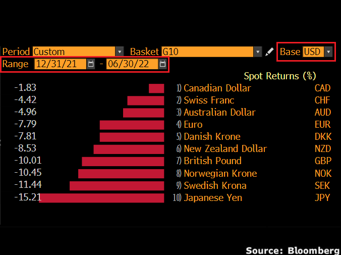 The mighty dollar reigned supreme during the first half of 2022, asserting its dominance over all G10 currencies.