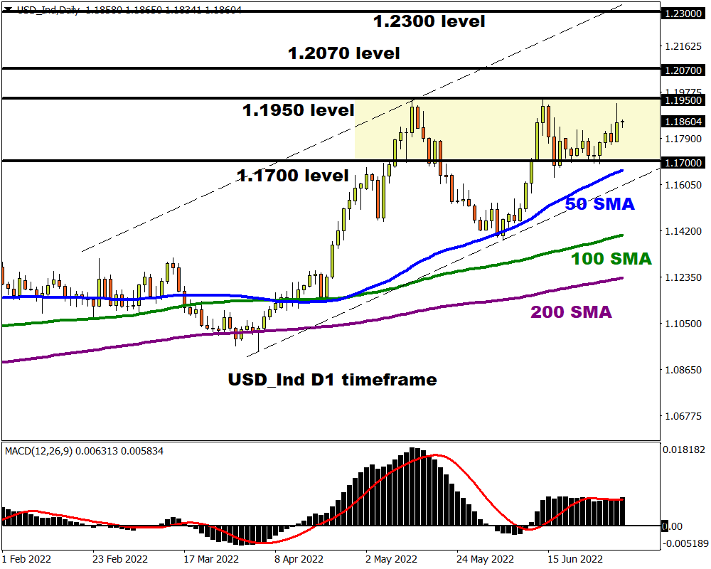 It looks like the equally-weighted USD Index could be gearing to push higher with 1.1950 acting as a key level of interest.