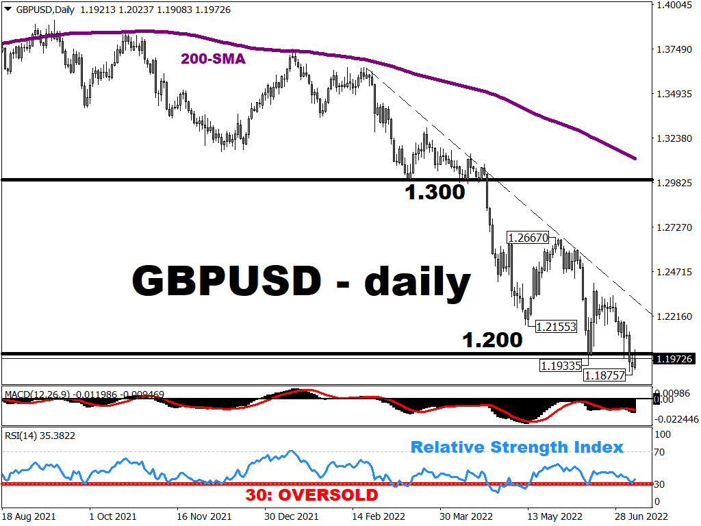 Though climbing some 0.4% at the time of writing, GBPUSD is straining to hang on to the psychologically-important 1.20 level.