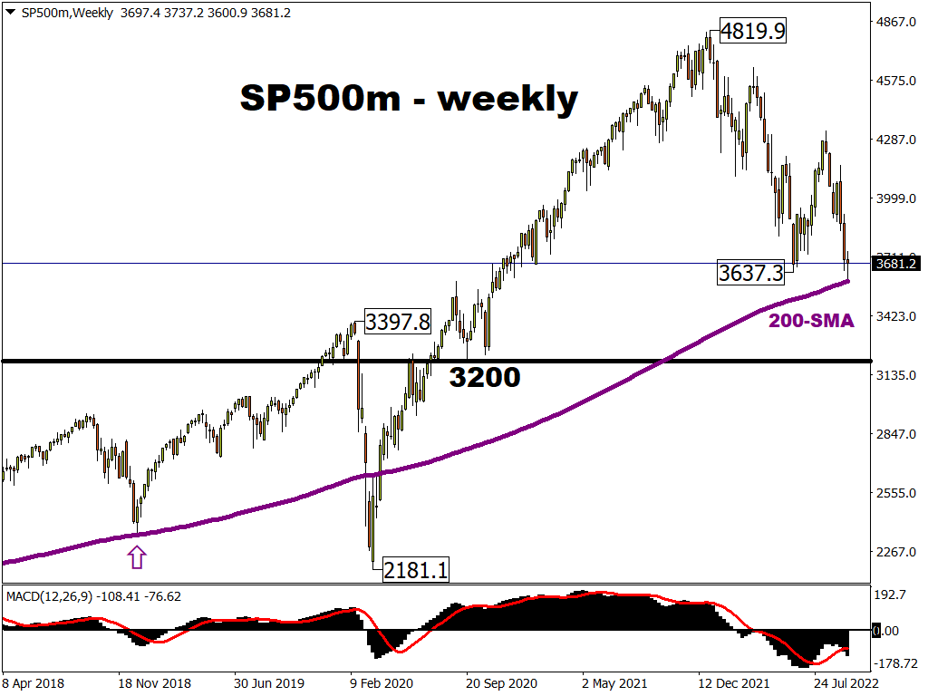 So if this 200-week SMA doesn't hold, the S&P 500 is expected to then set course for the low-3000 region, dragged down by heightened fears over a potential US recession and higher-for-longer US interest rates.