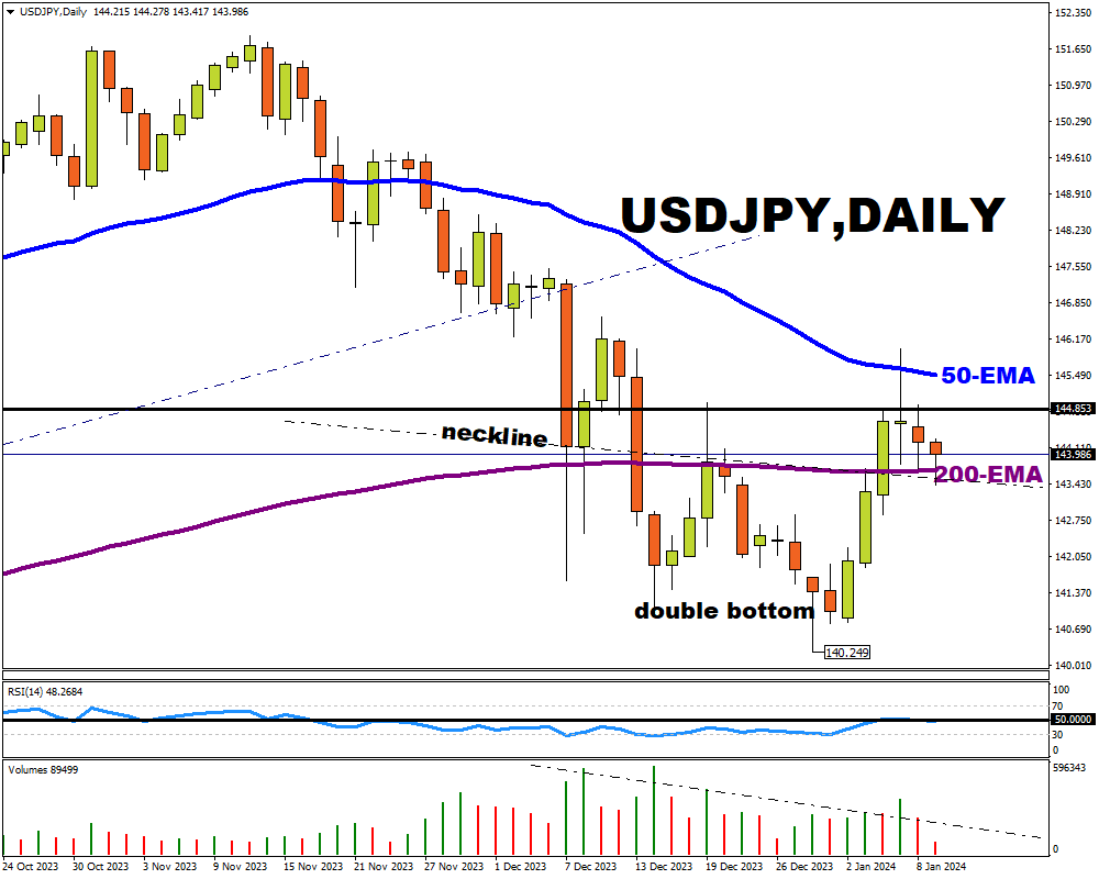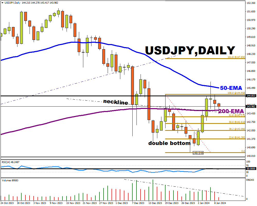USDJPY bounced off the neckline of a daily double-bottom pattern after data showed inflation in Tokyo cooled for a second month in December.