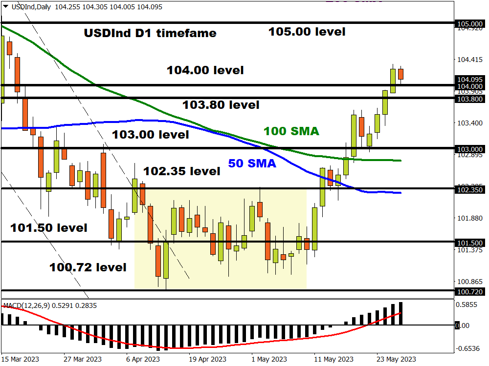 - If a deal is reached before Yellen’s deadline, this could come as a major relief to global financial markets and boost buying sentiment towards the USD. Such an outcome may push the US Dollar Index to levels not seen since early March 2023 at 105.00.
