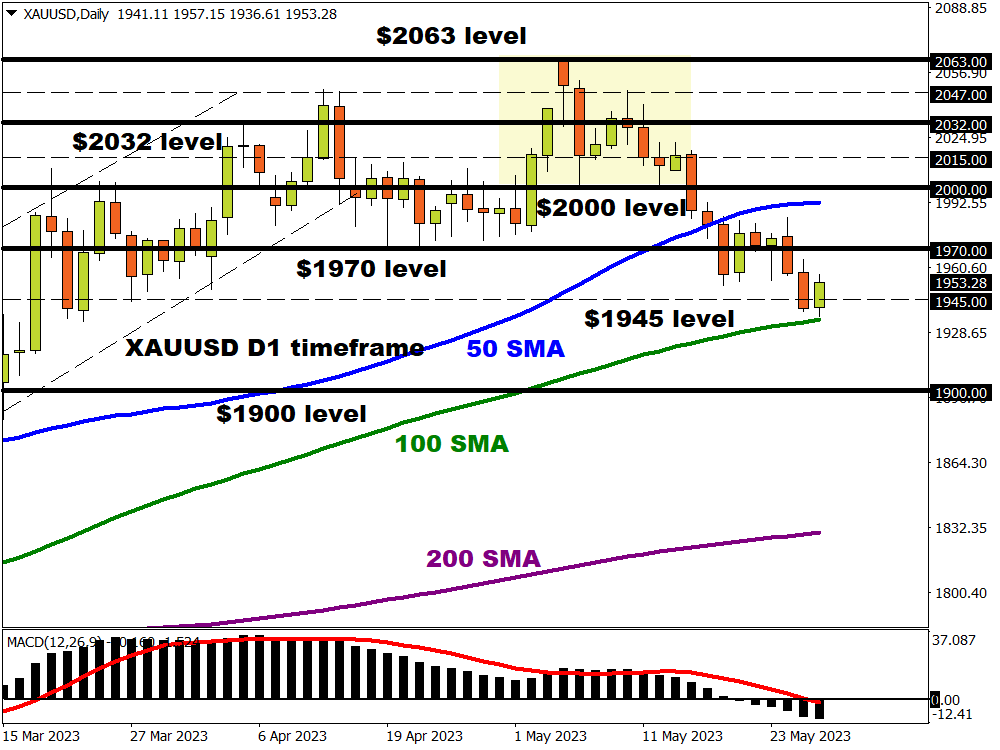 - Positive news and breakthrough on debt talks could see gold tumble toward $1900