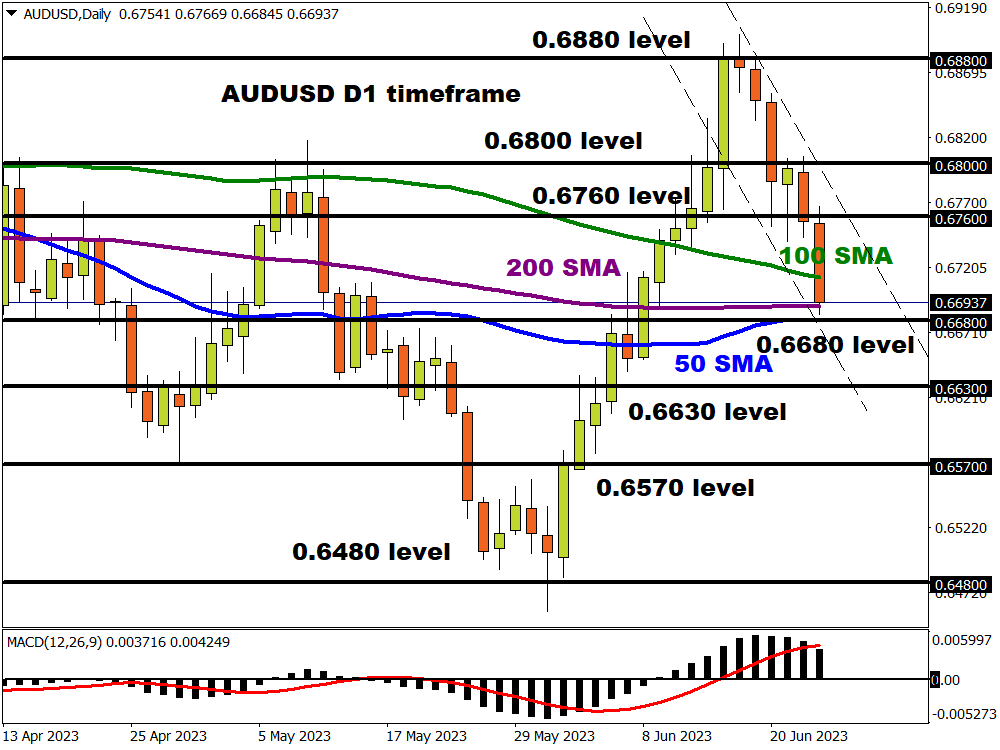 Regarding the technical outlook, the AUDUSD is under pressure on the daily charts. A solid breakdown below 0.6680 may open a path toward 0.6630 and 0.6570, respectively. Should prices push back above 0.6760, this could trigger an incline towards 0.6800 and 0.6880.