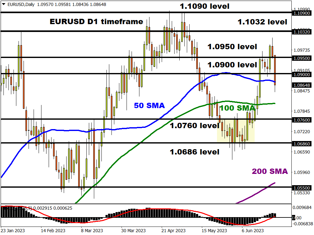 Looking at the technical picture, the EURUSD remains under pressure below the 1.0900 level. Sustained weakness below this point could open the doors back towards 1.0760 and lower. If prices push back above 1.0900, prices could test 1.1032 and 1.1090.