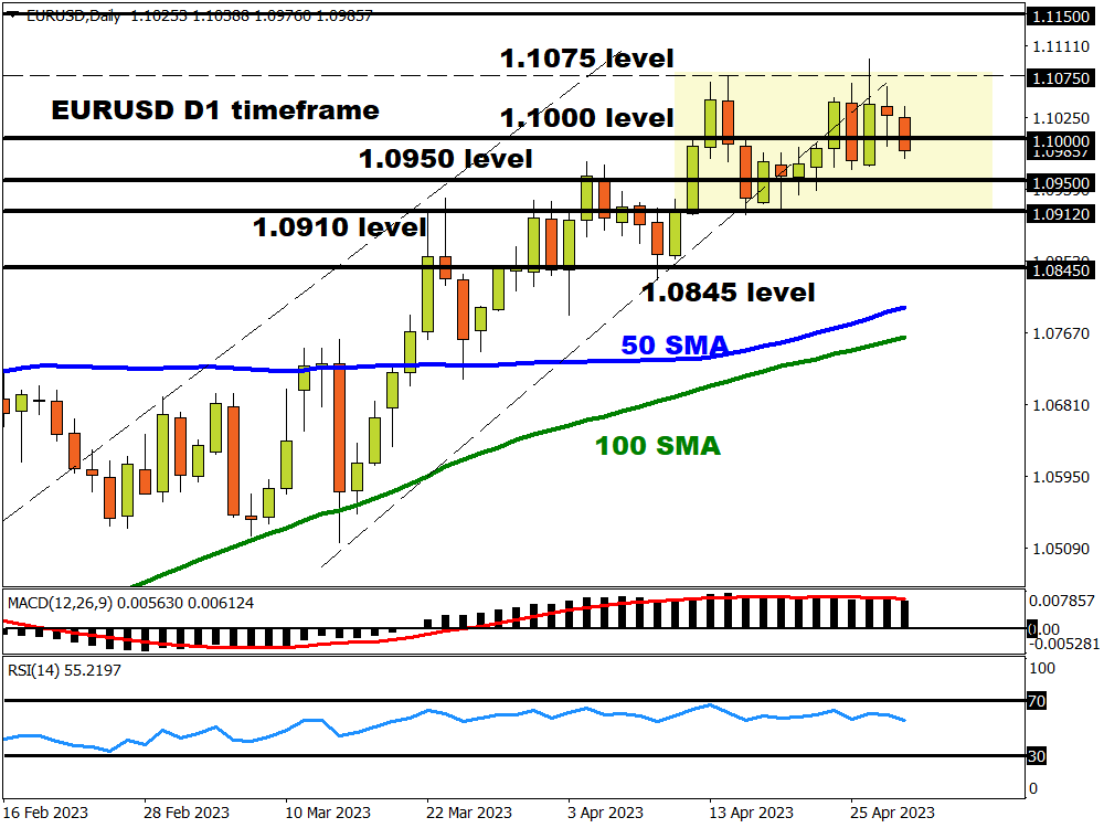 Markets expect the US economy to have created 177,000 jobs in April which is less than the prior month while the unemployment rate is seen holding at 3.5%. A stronger-than-expected US jobs report may support expectations around the Fed keeping US interest rates high for longer – boosting the dollar. However, further evidence of weakening US jobs markets may reinforce bets around the Fed pausing rate hikes, before eventually lowering them. Such a scenario is likely to weaken the dollar – pushing the EURUSD higher.
