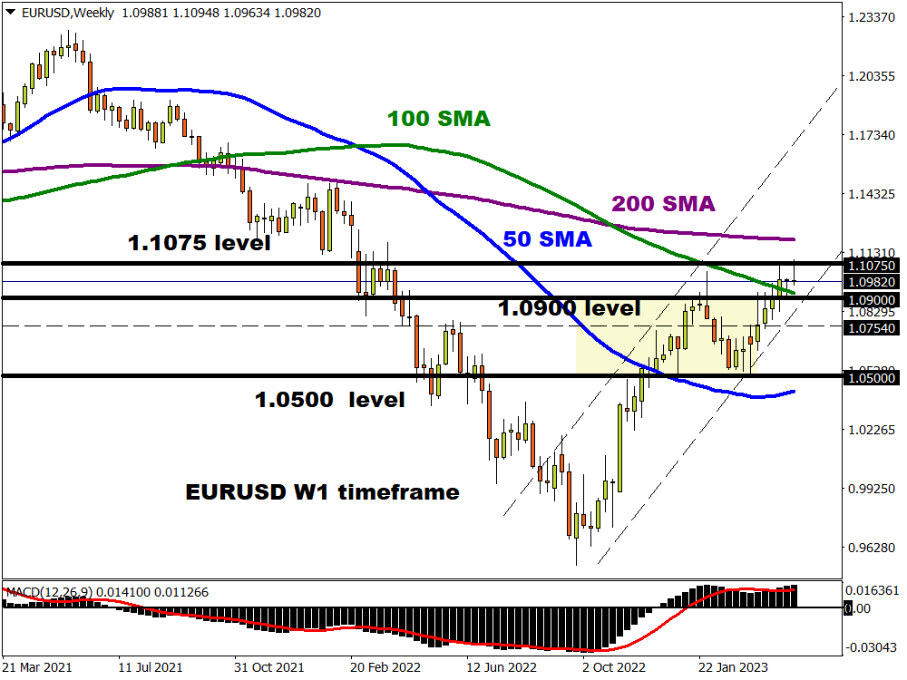 Zooming out to the weekly chart, bulls are clearly in the driving seat. A strong weekly close above 1.1075 may signal a move toward the 200-week SMA near 1.1200. If prices dip back under 1.0900, prices may test 1.0754 and 1.0500, respectively.