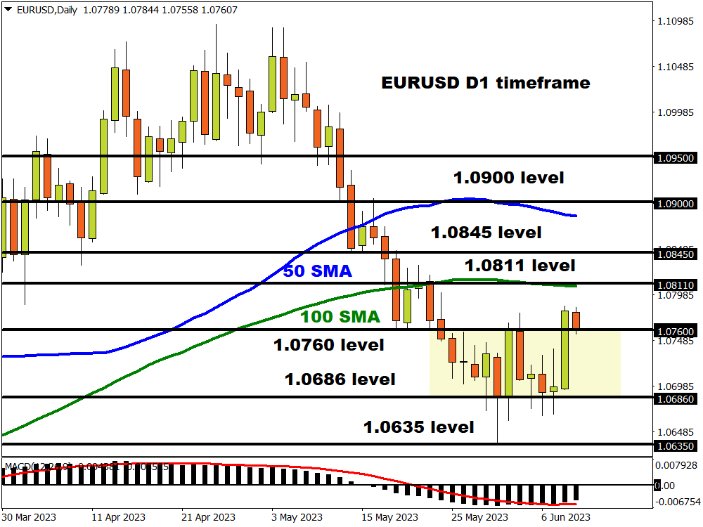 Markets widely expect the Federal Reserve to leave interests unchanged in June with traders currently pricing in a 28% probability of a 25bps hike, according to Fed fund futures. However, the recent hawkish surprise from the Reserve Bank of Australia (RBA) and Bank of Canada (BoC) has left investors questioning the Fed’s next move. All eyes will also be on the updated dot plot, as well as Fed Chair Jerome Powell’s remarks at the press conference. If the Fed moves ahead with a hawkish hold and signals one more hike in July, this could support the dollar. Should the central bank surprise markets by raising rates, dollar bulls are likely to run rampant – rocking the FX arena.