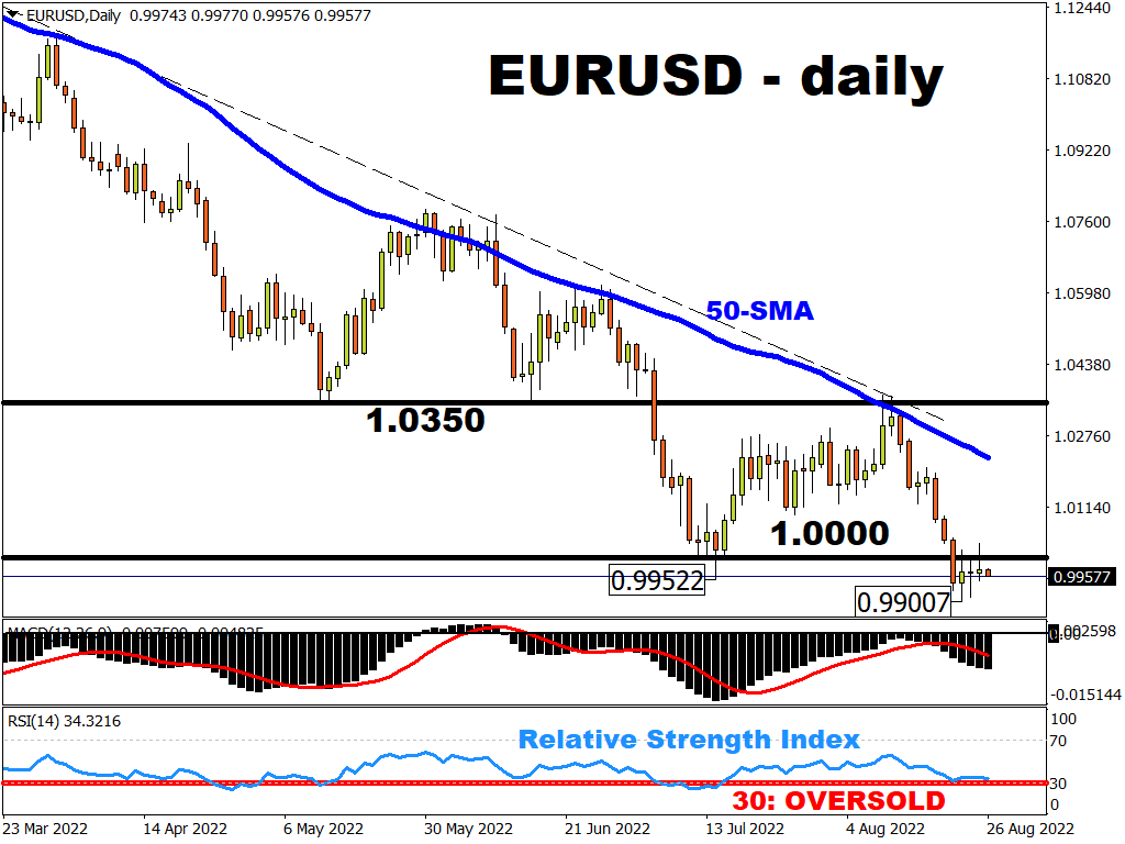 Such a narrative may translate into a softer US dollar which in turn alleviates the downward pressure on EURUSD and lift this currency pair back above parity.