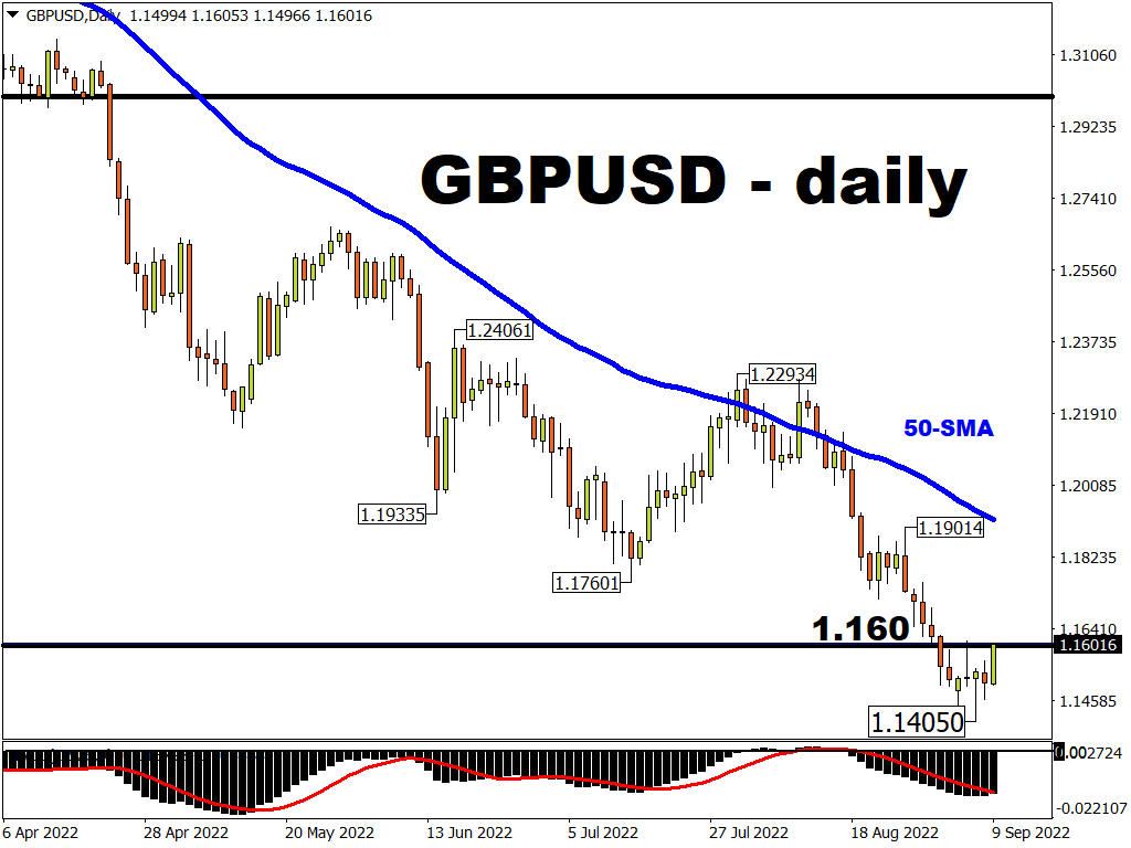 At the time of writing, GBPUSD is enjoying some relief as it pokes its head back above 1.160 while pulling away from its lowest since 1985.