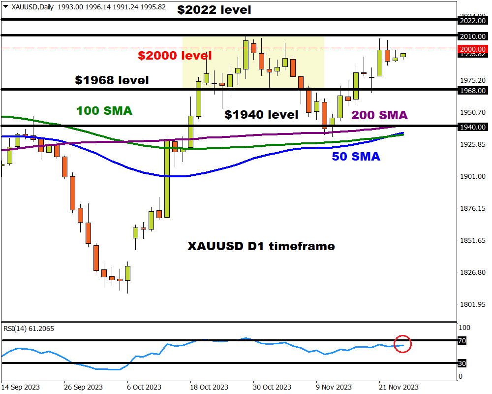 Gold bulls seem to be back in control on the daily charts with prices flirting around the psychological $2000 level.