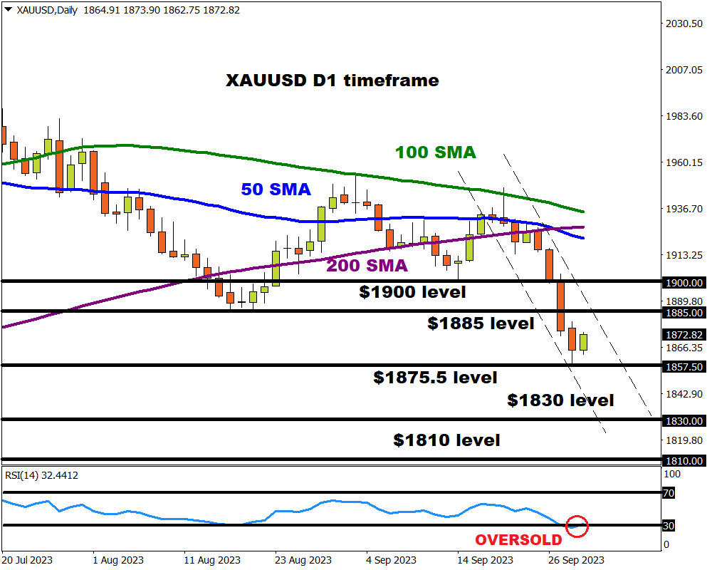 Gold remains under intense pressure on the daily charts with prices well below the 50, 100, and 200-day SMA.