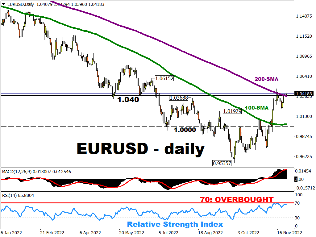 EURUSD’s 200-day simple moving average (SMA) has exerted strong resistance over the world’s most popularly traded FX pair in recent sessions.