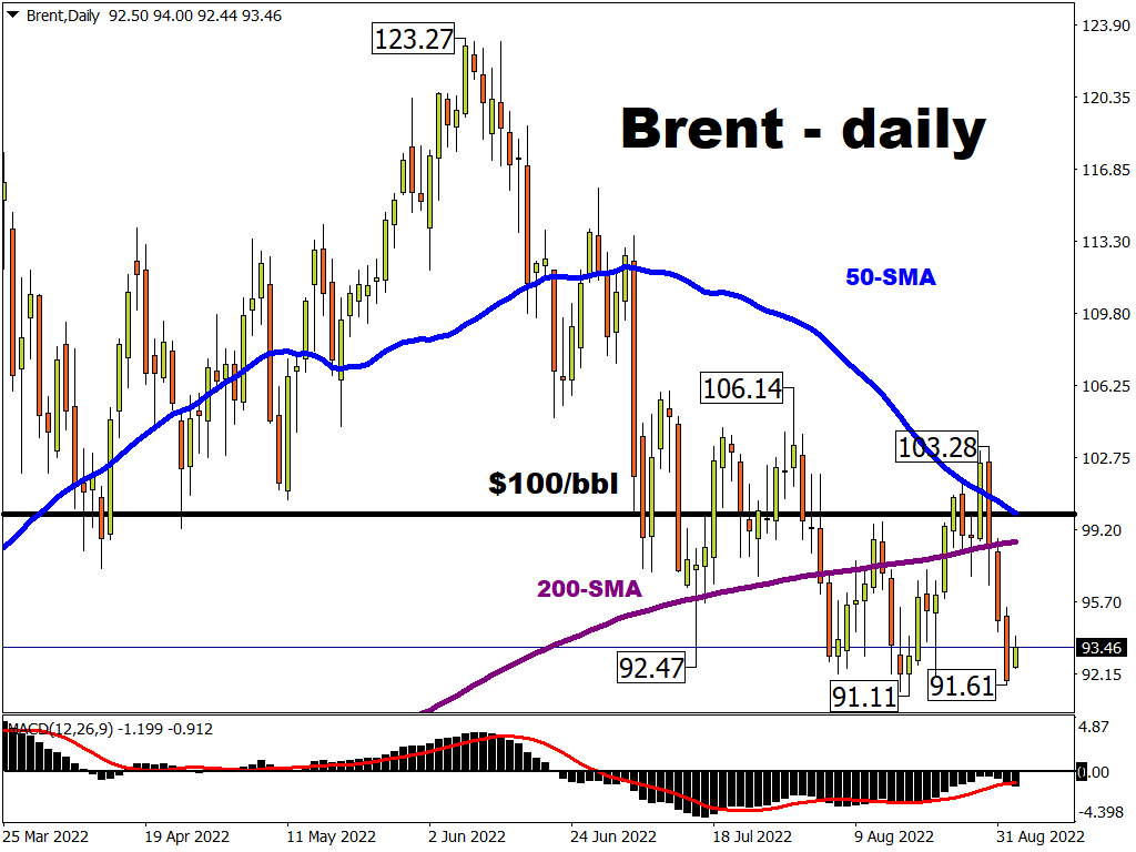 Brent oil has plunged below the psychologically-important $100/bbl mark this week, halving its year-to-date gains down to 28% at the time of writing.