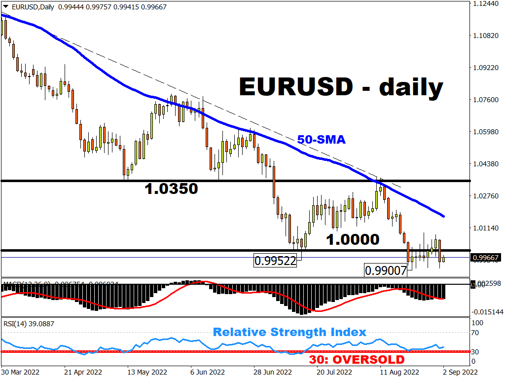 However, should the ECB surprise markets by triggering a relatively-dovish 50bps hike, that could open the 0.99 floor below EURUSD.