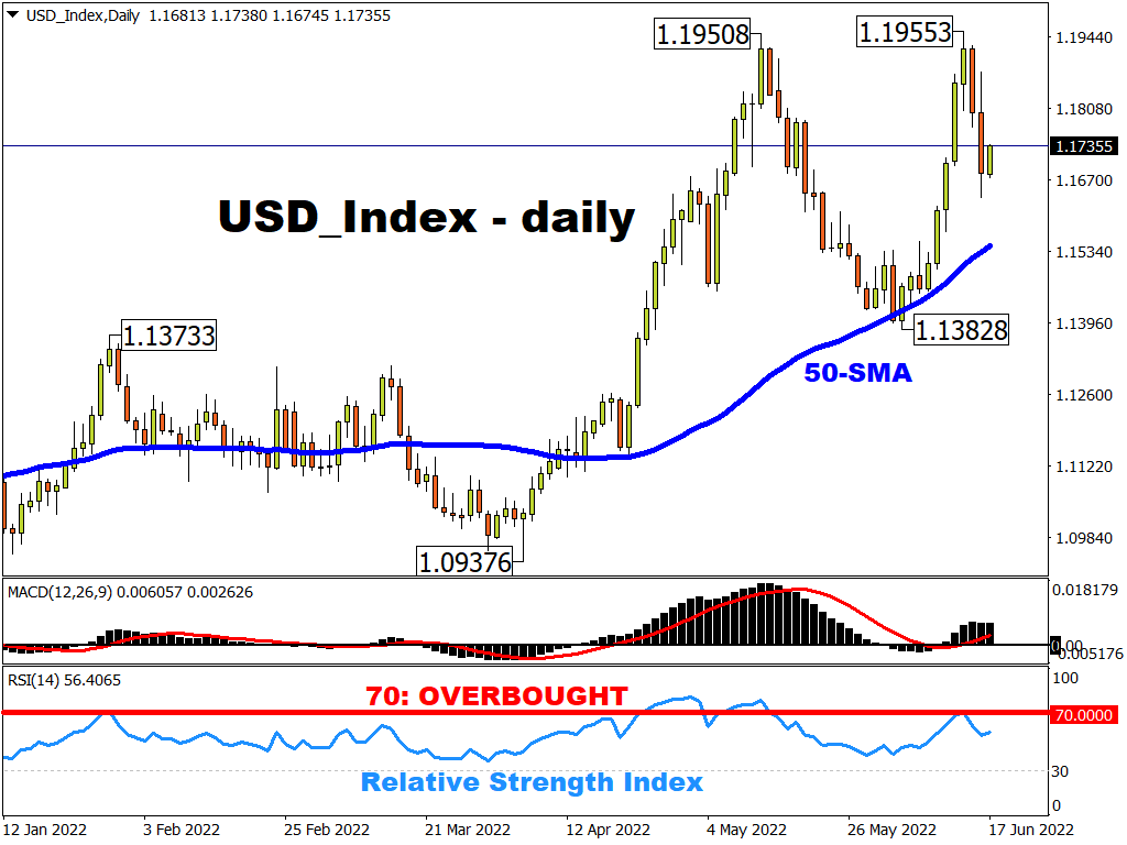 Note that the USD index measures the US dollar’s performance against six of its major peers, all in equal weights: