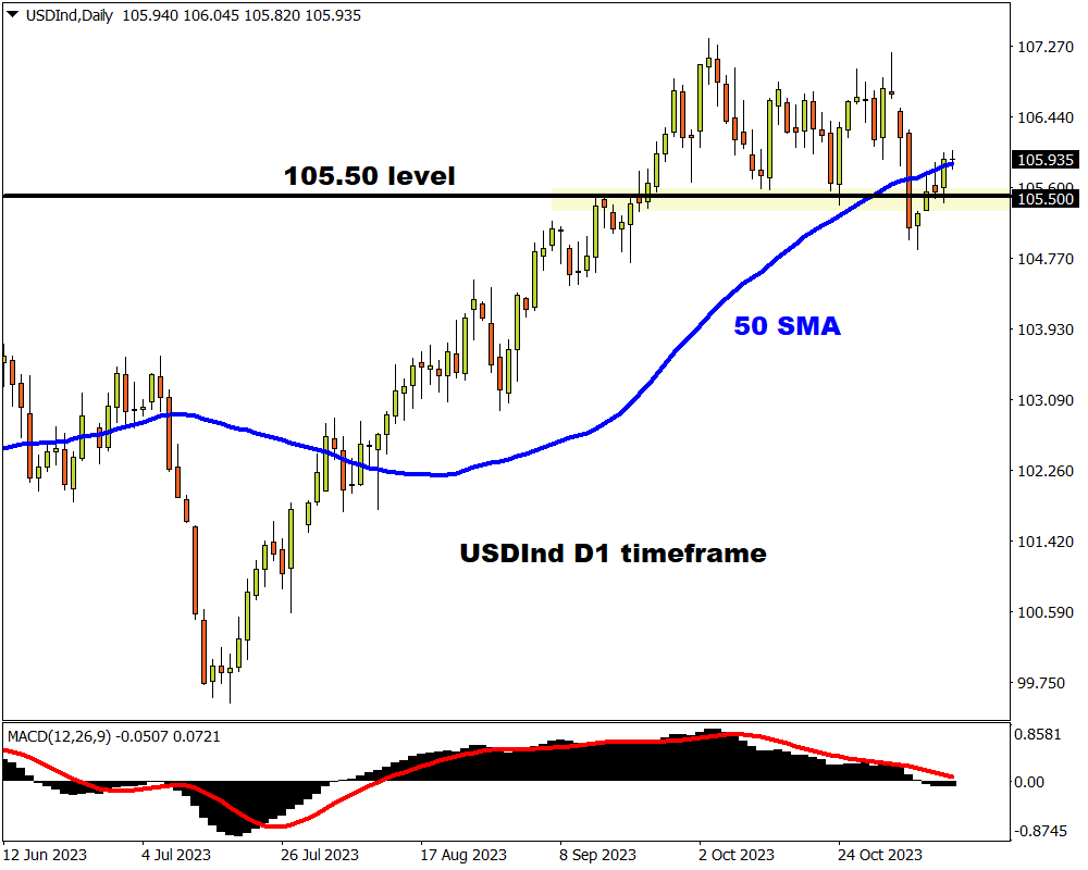- If US economic data disappoints and Fed officials adopt a dovish stance, the USDInd may weaken as bets increase on a Fed pause.