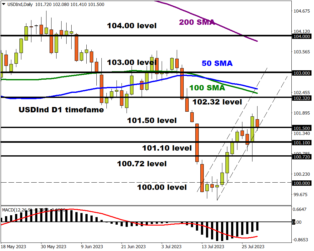- A stronger-than-expected US jobs report may fuel bets around the Fed hiking rates one more time in 2023, injecting dollar bulls with renewed confidence. This may propel the USD Index towards 102.32, just below the 100-day Simple Moving Average.