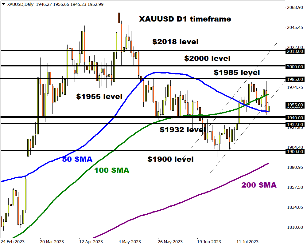 - A stronger-than-expected US jobs report may lead to higher bets around the Fed hiking rates once more in 2023. This development could drag prices back below $1932 with $1900 acting as a key level of interest.