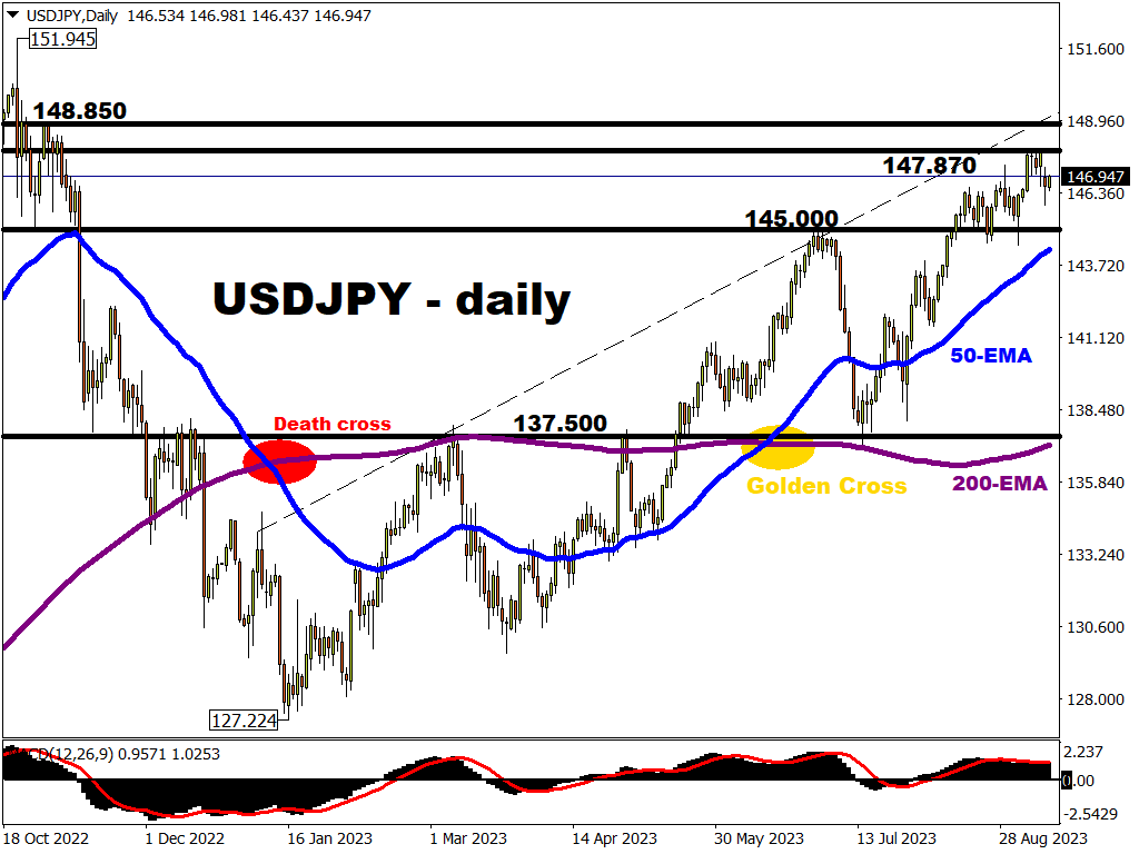 A bullish flag breakout could see a test of the 148.850 region which had resisted USDJPY bulls back in late-October/early-November 2022.